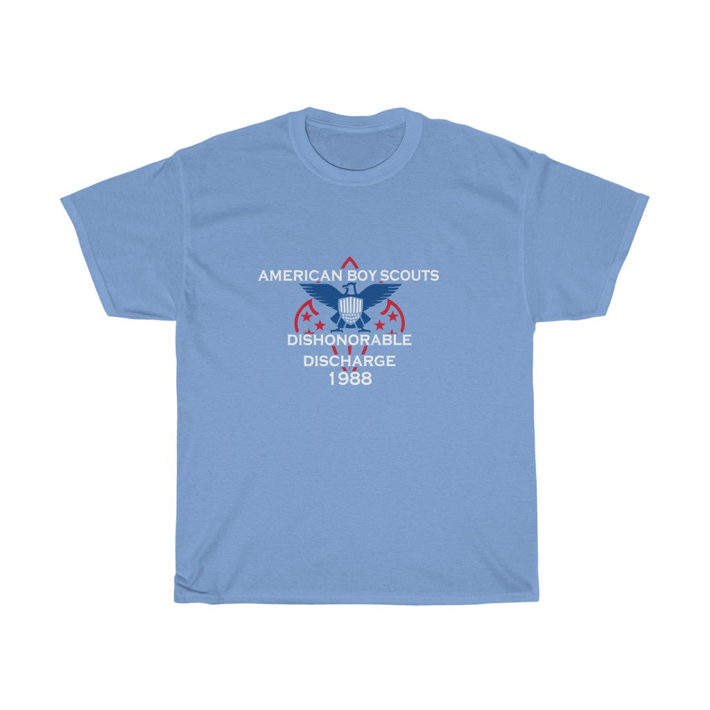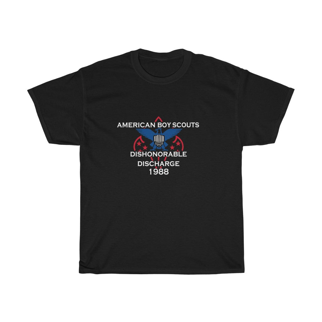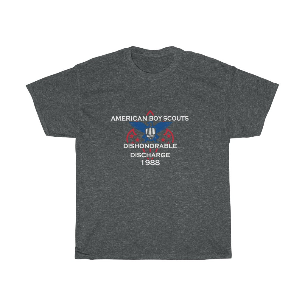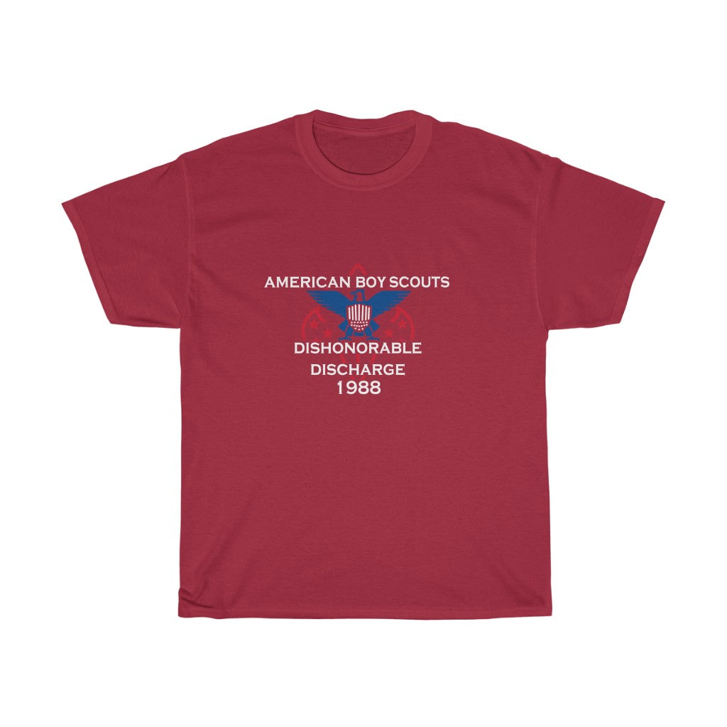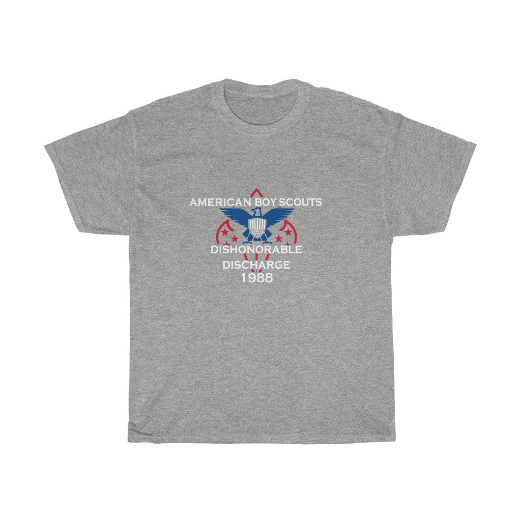 The shirt that bad boys received from all their hard work, knot tieing, fire starting, camp-fire song singing, survival practicing, kettle corn selling, stupid suit-wearing, tight pants having, corny, pretending to have fun, okay camp counselor Bob having, only to be discharged lookinah (I digress). This heavy cotton tee has a classic cotton look and feel. Casual elegance will make it an instant favorite in everyone's wardrobe.