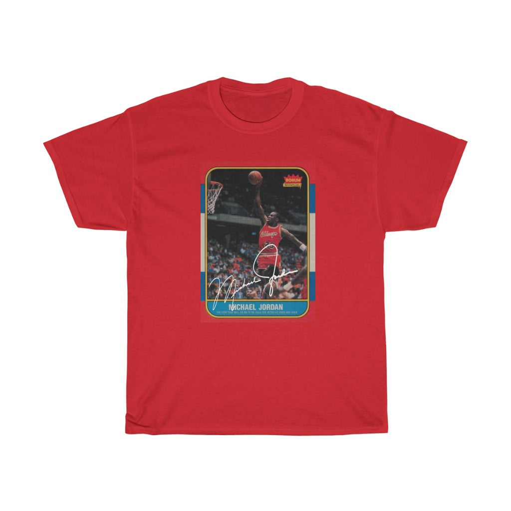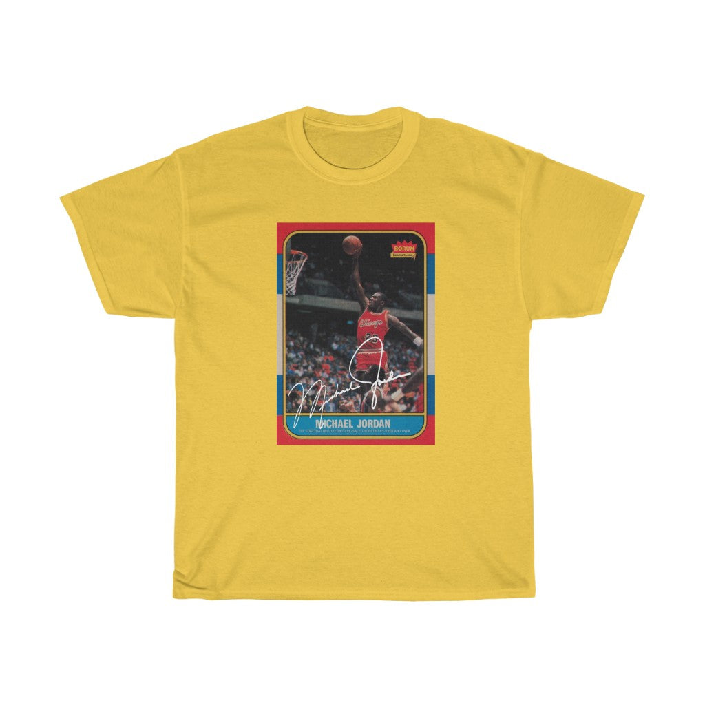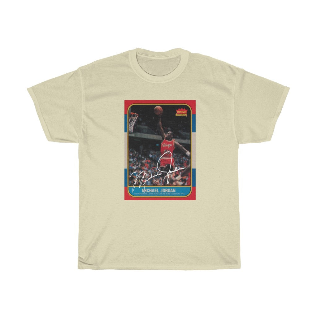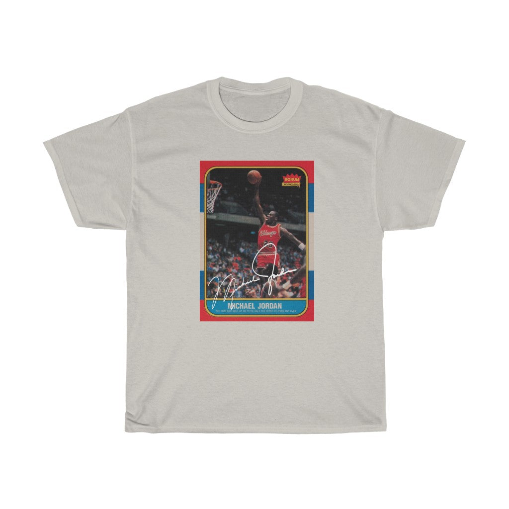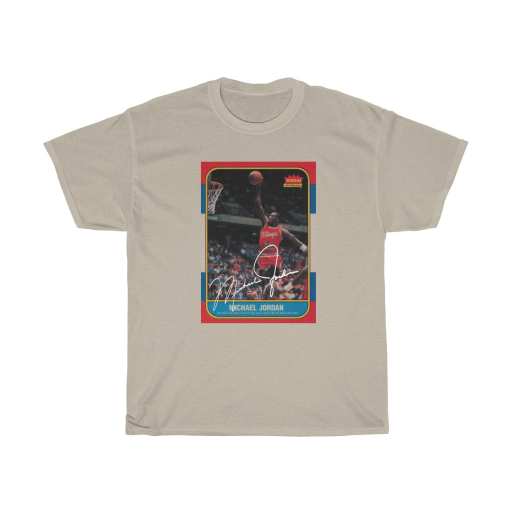 If you were never so lucky to find this prized possession as a kid after buying pack after pack of Fleer Cards. Here is a chance to own your own. Of course this is just fan art and a knock off, but man is it dope. The unisex heavy cotton tee is the basic staple of any wardrobe. It is the foundation upon which casual fashion grows. All it needs is a personalized design design to elevate things to profitability. The specialty spun fibers provide a smooth surface for premium printing vividity and sharpness. No side seams mean there are no itchy interruptions under the arms. The shoulders have tape for improved durability.