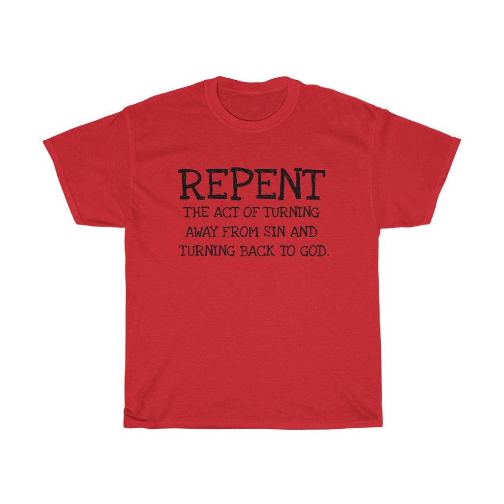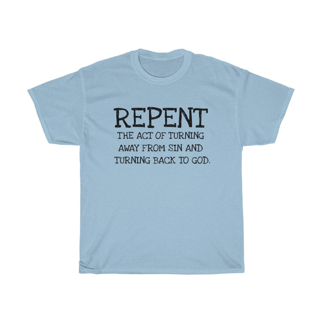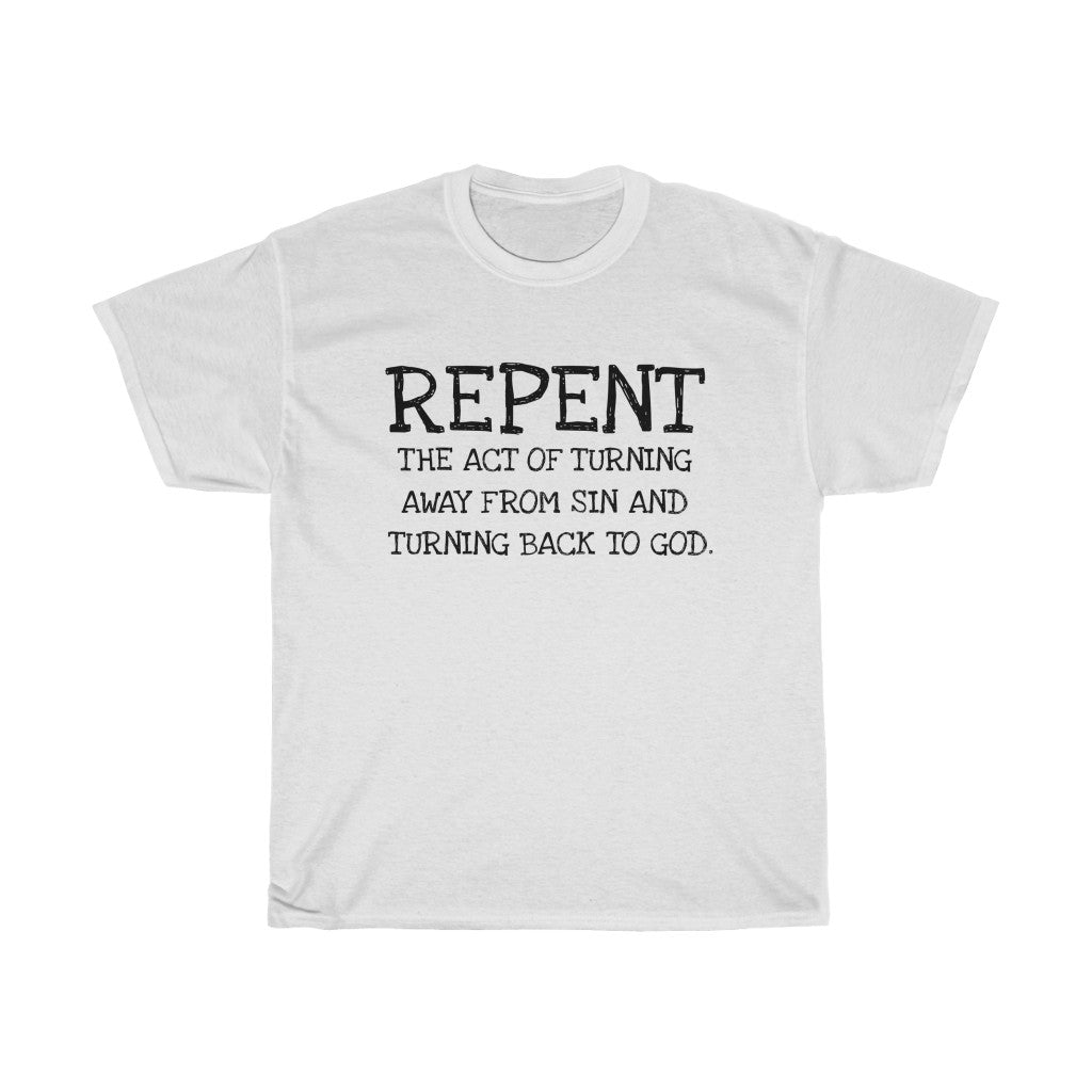 Repentance is the ultimate act of humility. It begins with an acknowledgment of sin and admission of one's need for a savior. It also alleviates an individual from the idea of being responsible for their own salvation. There is one who died so that we might be reconciled unto God. Come to Christ with a repentant heart and he will never turn you away. The greatest feeling in the world is to know that I have done wrong, and yet I am forgiven and accepted. Halla. This heavy cotton tee has the classic cotton look and feel. Casual elegance will make it an instant favorite in everyone's wardrobe.